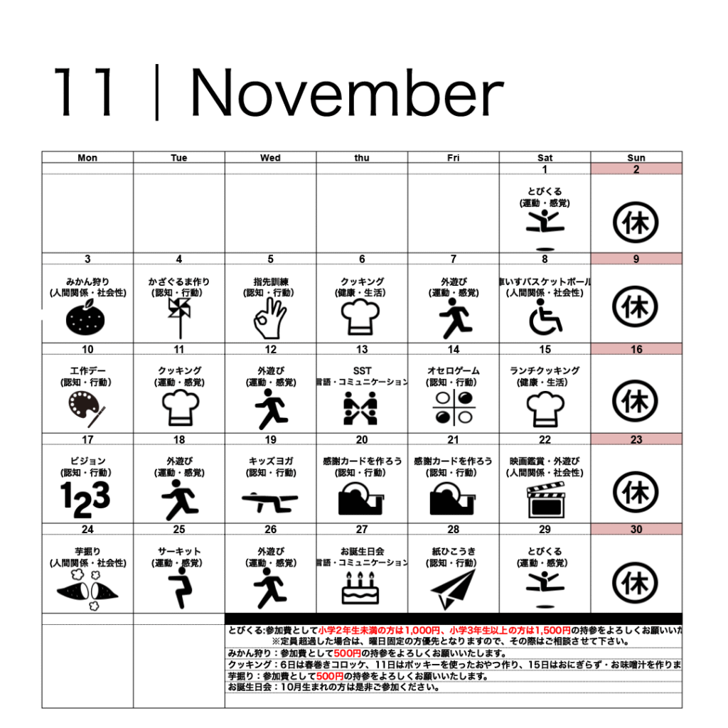 お誕生日会:11月生まれの方は是非ご参加ください。
